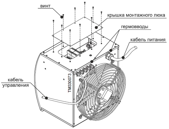 | Особенности: | Кабель пульта управления HL10 7х0,5мм2 подключен на заводе-изготовителе, имеет длину 1,8-2,6 метра в зависимости от модели. При необходимости может быть увеличен до необходимой длины самостоятельно монтажной службой. Необходима установка УЗО в цепь питания тепловентилятора в дополнение к автоматическому выключателю. Запрещена установка аппарата вертикально к потолку. |