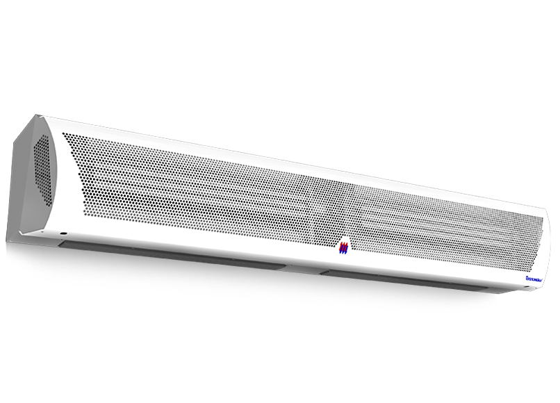 Тепловая завеса Комфорт для проемов высотой от 3 до 5 м. Переднее всасывание воздуха допускает установку завесы в ограниченном пространстве. По заказу панель - из нержавеющей стали.