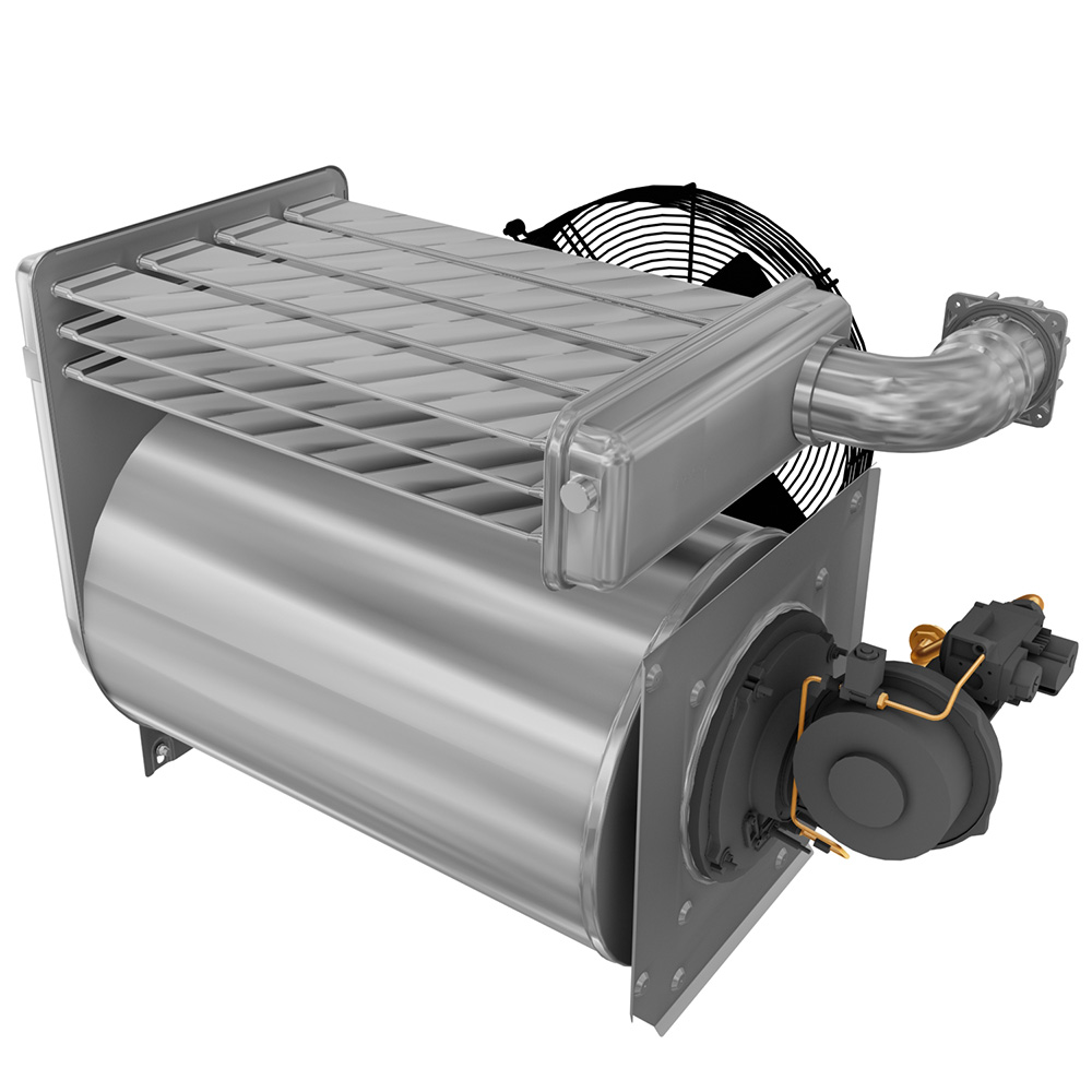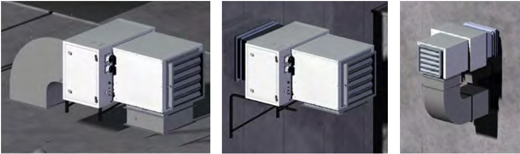 | Тип: | Уличный промышленный, настенный, газовый воздухонагреватель (тепловентилятор, теплогенератор, калорифер) непрямого нагрева (с отводом продуктов сгорания) с осевым вентилятором наружного исполнения (до -40⁰С) |
