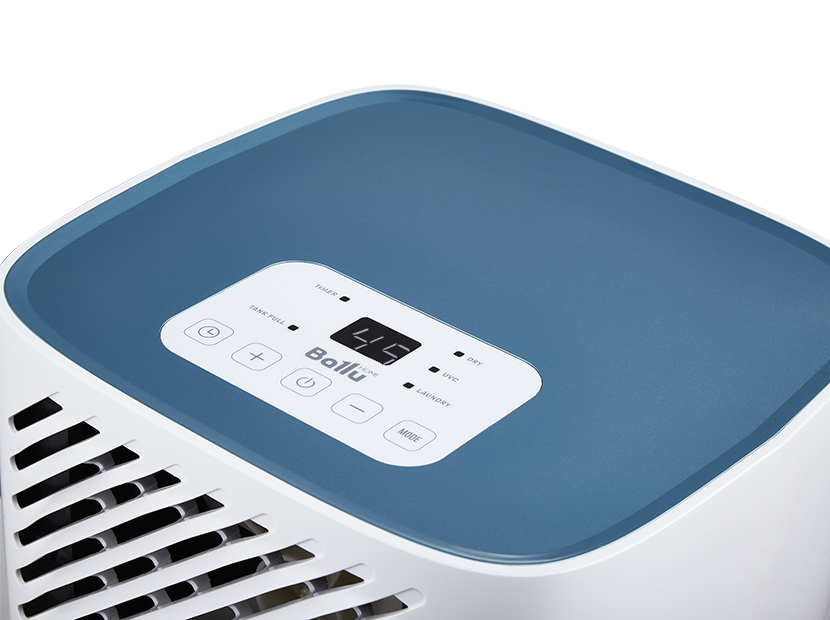 LCD-дисплей; Отображение текущей влажности; Встроенный гигростат; Автоматическое поддержание заданной влажности; Ультрафиолетовая лампа с режимом обеззараживания воздуха; Сушка одежды; Моющийся воздушный фильтр; Емкость для конденсата; Возможность постоянного отведения дренажа; Таймер; Индикатор заполнения бака; Защита от переполнения емкости с автоматическим выключением; Колеса для перемещения; Не требует специального монтажа.
