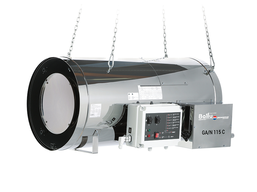 Подвесные теплогенераторы прямого нагрева низкого давления Ballu-Biemmedue серии Arcotherm GA/N - профессиональные нагреватели воздуха, работающие на природном газе. Они предназначены для автономного обогрева помещений сельскохозяйственного и животноводческого назначения, а также производственных и сортировочных цехов, овощехранилищ и т. д. Встроенная автоматическая горелка на газе пропан-бутан с минимальным выбросом СО, NOx и этилена. Класс защиты распределительной коробки - IP 65. Разъём подключения термостата, гигростата или таймера. Высокопрочная конструкция нагревателя из нержавеющей стали. Автоматический поджиг. Ионизационный датчик контроля пламени. Термостат перегрева. Возможность подключения к центральной системе климатизации воздуха. Контроль потока воздуха вентилятора с помощью переключателя лопастей (класс защиты- IP 65). Газовая рампа: газовый фильтр, регулятор давления газа, предохранительный клапан,клапан подачи газа, соединители. Электродвигатель (класс защиты-IP55) установлен в позиции, облегчающей его техобслуживание и исключающей опасность перегрева. Постоянная пост вентиляция (постоянно включенный вентилятор) или заданная (30 секунд) (GA/N 70, GA/N 95, GA/N 115). Переключатель режимов зима-лето для использования нагревателя в качестве вентилятора. Соответствует требованиям нормативов UNI EN 12669:2003. Крепления для подвешивания. Функция контроля снижения подаваемого напряжения (GA/N 70, GA/N 95, GA/N 115).