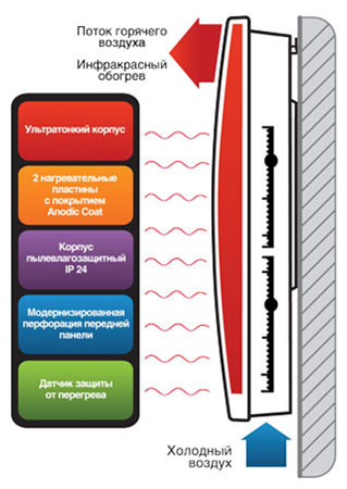 | Подробнее: | Электроконвектор Ballu характеризуется высоким качеством и эффективностью в использовании. Бытовые обогреватели с одинаковым успехом можно применять для организации основного отопления, так и в качестве дополнительного источника подачи тепла. Настенный конвектор пользуется заслуженным спросом среди клиентов и является абсолютно безопасным в эксплуатации. Многие приборы имеют класс влагопылезащиты IP24 и устанавливаются во влажных помещениях, в т.ч. в ванных комнатах. Эффективной системой отопления любого объекта является электрические конвекторы Ballu. Все виды обогревателей серии CAMINO ECO Mechanic, ENZO Mechanic, ENZO Eectronic, RED EVOLUTION, PLAZA EXT, изготавливают с применением современных инноваций, на высокотехнологическом оборудовании. В связи с подорожанием энергоресурсов, электрическое отопление для частного дома может являться более экономичным по сравнению с газовым источником подачи тепла. Благодаря наличию термостата, функциональности в использовании, отличному дизайну и надежности, электрообогреватель Балу стал отличной альтернативой более дорогому радиатору отопления, который требует профессиональный монтаж. Также в нашем интернет-магазине Вы можете приобрести конвективно-инфракрасные модели конвекторов для домашнего или производственного пользования. Конвективно-инфракрасный обогреватель RED EVOLUTION имеет систему усовершенствованного обогрева, в составе которой гармонично сочетается конвектор и инфракрасный обогреватель. Нагревательные пластины, нагревают не только проходящий через отверстия внизу прибора воздух, но и переднюю панель, которая в свою очередь, служит отражателем инфракрасного обогрева. Именно инфракрасное излучение позволяет нагреть предметы, находящиеся в зоне нагрева. Далее предметы нагревают воздух. Скомбинированные в этом устройстве 2 типа обогрева помещения, по сути, очень гармонично добавляют друг друга и создают максимум комфорта для человека в помещении. |