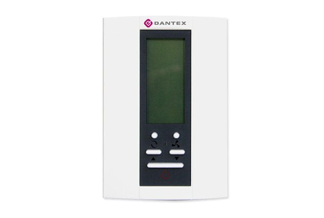 Проводной, настенный пульт дистанционного управления (электронный термостат) Dantex DF-SJR42 с выносным датчиком температуры позволяет измерять и поддерживать заданную температуру в помещении, а также регулировать скорость вращения вентилятора двухтрубных канальных фанкойлов Dantex.
