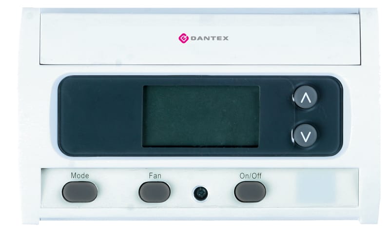 Проводной, настенный пульт дистанционного управления (электронный термостат) Dantex MD-KJR15B/EP позволяет измерять и поддерживать заданную температуру в помещении, а также регулировать скорость вращения вентилятора напольно-потолочных, консольных, корпусных фанкойлов Dantex.