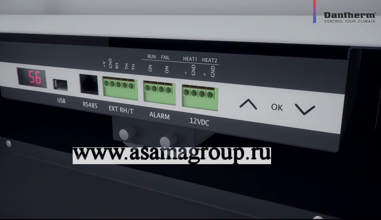 | Особенности: | Заводская уставка относительной влажности 60%, подключение к системе BMS по шлюзу RS 485, USB- порт, защита от обмерзания (оттайка), индикация рабочих режимов. |