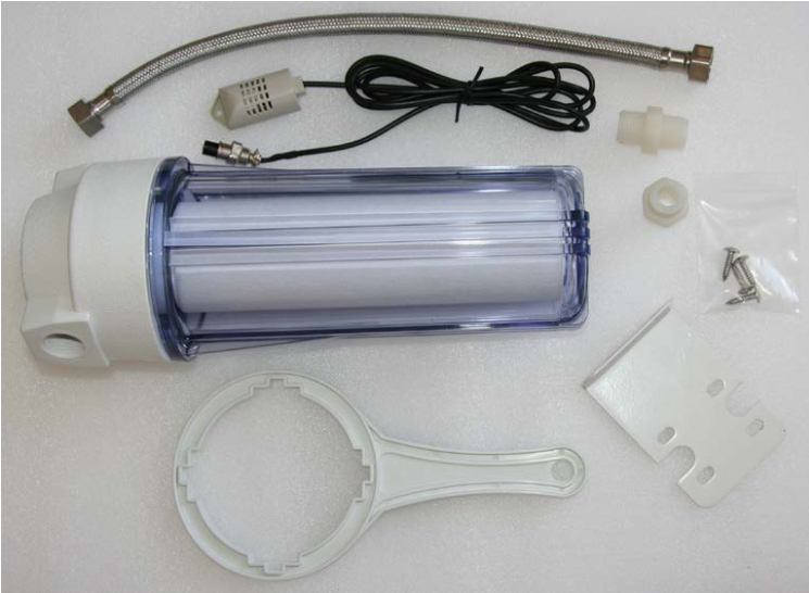 | Комплектация: | В комплекте с увлажнителем поставляются: проточный фильтр грубой очистки со сменным картриджем - 1 шт., выносной датчик влажности - 1 шт., ниппель 1/2" - 2 шт., шланг-подводка 1/2" (длина 40 см) - 1 шт., кронштейн фильтра - 1 шт., ключ для фильтра - 1 шт., саморез нержавеющий 5х19 - 4 шт. |