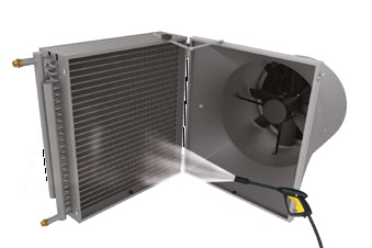 Благодаря вентилятору с повышенной степени защиты IP66, удвоенному промежутку между ламелями теплообменника, а также увеличенной толщине ламелей возможна очистка аппарата сжатым воздухом. Такое строение облегчает очистку аппарата, и тем самым не влияет на снижение тепловой мощности аппарата.