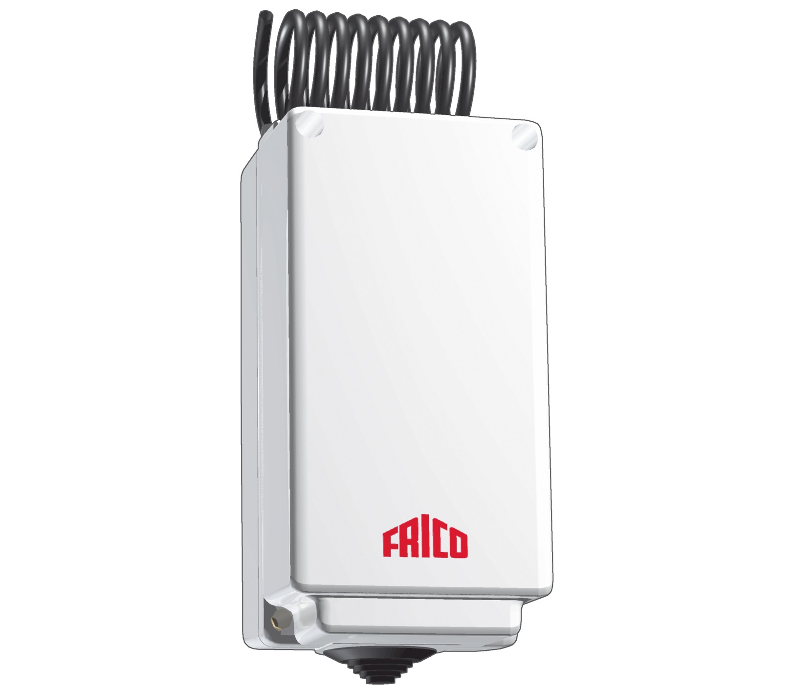 Капиллярный двухступенчатый термостат с регулируемым зазором срабатывания между ступенями (1-4°C) с сухим контактом Frico (Фрико) KRT2800 для поддержания заданной температуры с внутренней шкалой настройки температуры. Применяется для управления системами обогрева (отопления) и охлаждения (кондиционирования).