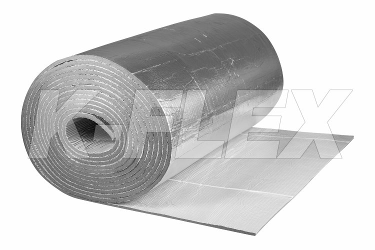 Техническая самоклеющаяся рулонная теплоизоляция с фольгированным армированным покрытием серии AIR AD METAL от компании K-FLEX в рулонах. Применяется для тепло- и звукоизоляции поверхностей в системах кондиционирования и вентиляции, например, воздуховодов, фасонных жестяных изделий, смесительных камер, корпусов оборудования и проч. Имеет высокие шумоизолирующие способности.