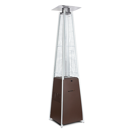 Уличные инфракрасные газовые нагреватели с живым огнем в виде пирамиды от компании NEOCLIMA предназначены для использования на открытых объектах: кафе, ресторанах, гостиницах, временных строительных конструкциях, например, в быстровозводимых шатрах или навесах для кейтеринга, беседках и верандах частных загородных домов и коттеджей. Отличительными особенностями данных обогревателей являются: оригинальный дизайн, живое пламя, надежные материалы корпуса и горелка (нержавеющая сталь), простота в управлении, пьезорозжиг, система защиты отключения газа при отсутствии пламени и опрокидывании, плавная регулировка мощности горелки, простой способ замены газового баллона, колеса для перемещения в комплекте. Прибор сертифицирован РОСТЕСТом.
