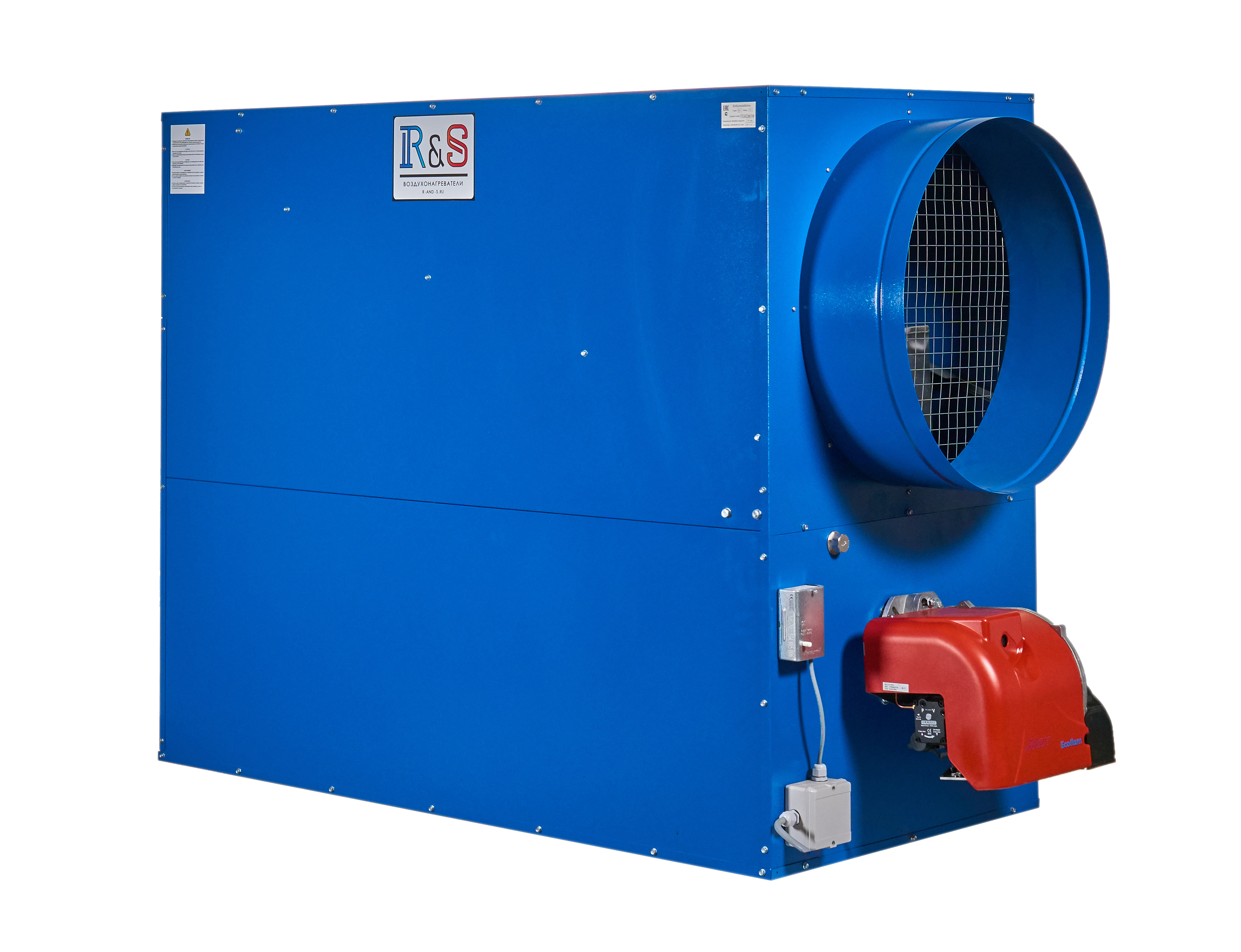 Теплогенераторы с итальянскими горелками Ecoflam на дизельном топливе, газе (магистральный, сжиженный), мазуте, отработанном масле российского производителя R&S имеют высокую надежность, низкую цену, соответствуют всем необходимым требованиям ГОСТ и гарантию 3 года. Высокое качество материалов, комплектующих и сборки - вот основные критерии российских теплогенераторов. Теплогенераторы R&S эффективны в работе, экономичны в эксплуатации и обслуживании, выгодны по цене. Воздухонагреватели R&S имеют тепловую полезную мощность от 52.2 кВт до 208.2 кВт. Они широко применяются для отопления складских и производственных помещений, рудников и нефте-/газо- добывающих предприятий, ангаров и теплиц, животноводческих ферм и птичников, торговых и офисных центров, магазинов и гаражей, логистических комплексов и фабрик, технологических помещений и хранилищ, вокзалов и аэропортов, стадионов и спортивных залов, гостиниц и ресторанов. Данное оборудование очень эффективно и с минимальными затратами отапливают помещения большого и среднего объема. Теплогенераторы имеют возможность установки в помещении на полу, так могут подвеживаться на потолок или стены. Изготавливаются в вертикальном и горизонтальном исполнении, могут использоваться в системе воздуховодов. Для комплексной работы системы воздушного отопления на базе теплогенератора не требуются приобретать дополнительно горелку и термостат - они идут в комплекте. Высокоэффективные воздухонагреватели предназначены для установки внутри помещений. Возможно использовать как для прямой выдачи нагретого воздуха, так и для работы с воздуховодами с суммарным падением статического давления до 100Па. Обычно используются в системах воздушного отопления промышленных, общественных, складских и торговых зданий и помещений.