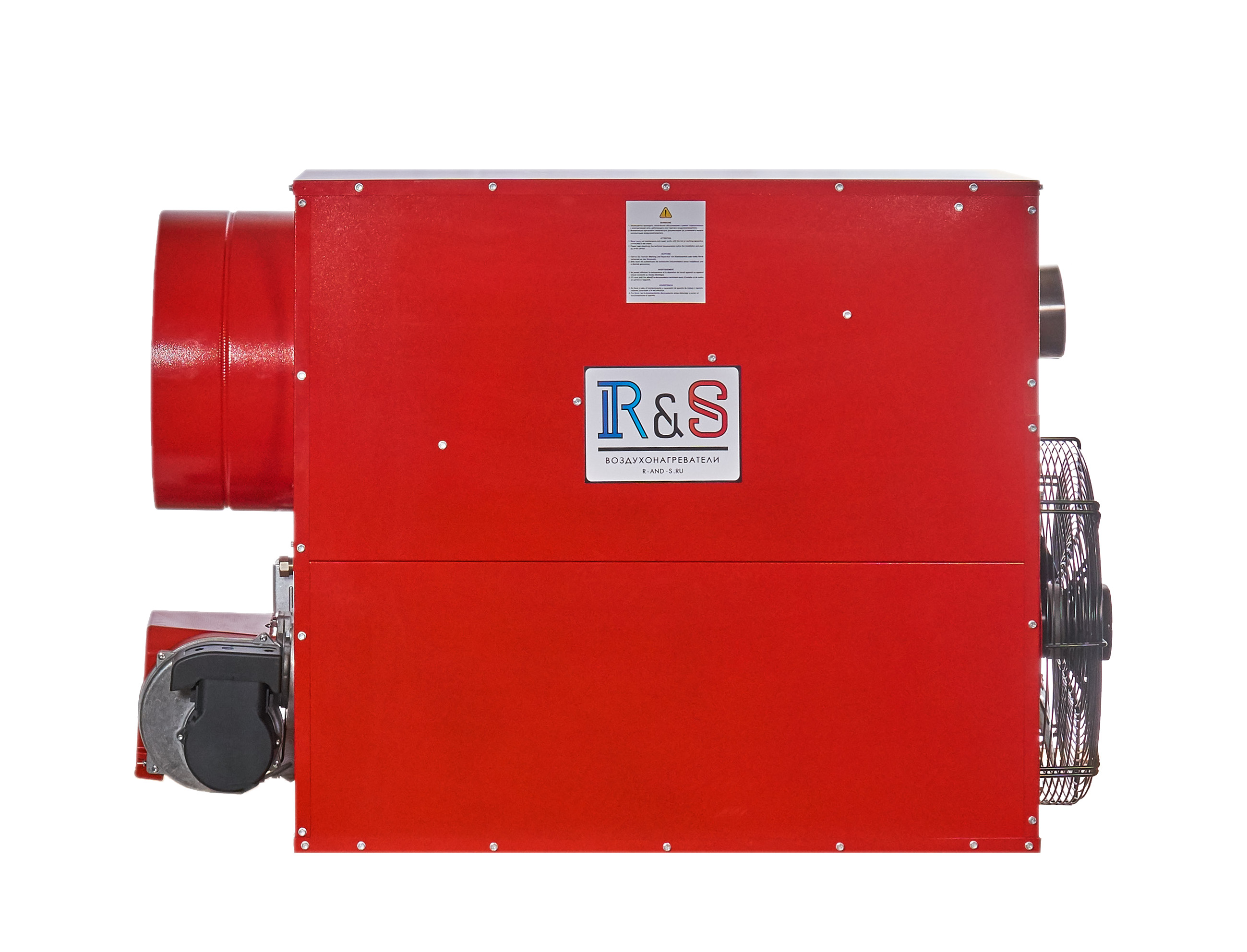 Теплогенераторы с итальянскими горелками Ecoflam на дизельном топливе, газе (магистральный, сжиженный), мазуте, отработанном масле российского производителя R&S имеют высокую надежность, низкую цену, соответствуют всем необходимым требованиям ГОСТ и гарантию 3 года. Высокое качество материалов, комплектующих и сборки - вот основные критерии российских теплогенераторов. Теплогенераторы R&S эффективны в работе, экономичны в эксплуатации и обслуживании, выгодны по цене. Воздухонагреватели R&S имеют тепловую полезную мощность от 52.2 кВт до 208.2 кВт. Они широко применяются для отопления складских и производственных помещений, рудников и нефте-/газо- добывающих предприятий, ангаров и теплиц, животноводческих ферм и птичников, торговых и офисных центров, магазинов и гаражей, логистических комплексов и фабрик, технологических помещений и хранилищ, вокзалов и аэропортов, стадионов и спортивных залов, гостиниц и ресторанов. Данное оборудование очень эффективно и с минимальными затратами отапливают помещения большого и среднего объема. Теплогенераторы имеют возможность установки в помещении на полу, так могут подвеживаться на потолок или стены. Изготавливаются в вертикальном и горизонтальном исполнении, могут использоваться в системе воздуховодов. Для комплексной работы системы воздушного отопления на базе теплогенератора не требуются приобретать дополнительно горелку и термостат - они идут в комплекте. Высокоэффективные воздухонагреватели предназначены для установки внутри помещений. Возможно использовать как для прямой выдачи нагретого воздуха, так и для работы с воздуховодами с суммарным падением статического давления до 100Па. Обычно используются в системах воздушного отопления промышленных, общественных, складских и торговых зданий и помещений.