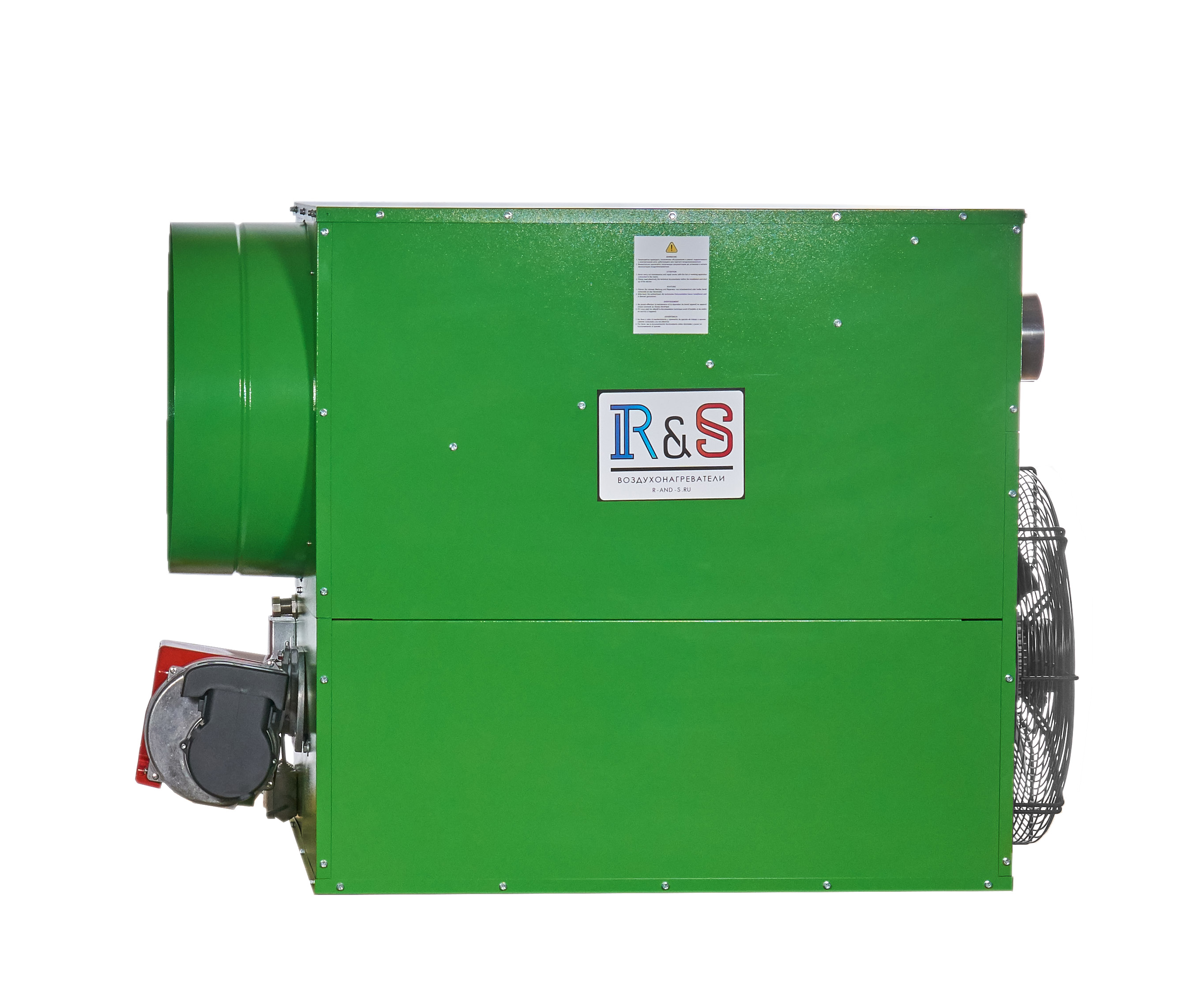 Теплогенераторы с итальянскими горелками Ecoflam на дизельном топливе, газе (магистральный, сжиженный), мазуте, отработанном масле российского производителя R&S имеют высокую надежность, низкую цену, соответствуют всем необходимым требованиям ГОСТ и гарантию 3 года. Высокое качество материалов, комплектующих и сборки - вот основные критерии российских теплогенераторов. Теплогенераторы R&S эффективны в работе, экономичны в эксплуатации и обслуживании, выгодны по цене. Воздухонагреватели R&S имеют тепловую полезную мощность от 52.2 кВт до 208.2 кВт. Они широко применяются для отопления складских и производственных помещений, рудников и нефте-/газо- добывающих предприятий, ангаров и теплиц, животноводческих ферм и птичников, торговых и офисных центров, магазинов и гаражей, логистических комплексов и фабрик, технологических помещений и хранилищ, вокзалов и аэропортов, стадионов и спортивных залов, гостиниц и ресторанов. Данное оборудование очень эффективно и с минимальными затратами отапливают помещения большого и среднего объема. Теплогенераторы имеют возможность установки в помещении на полу, так могут подвеживаться на потолок или стены. Изготавливаются в вертикальном и горизонтальном исполнении, могут использоваться в системе воздуховодов. Для комплексной работы системы воздушного отопления на базе теплогенератора не требуются приобретать дополнительно горелку и термостат - они идут в комплекте. Высокоэффективные воздухонагреватели предназначены для установки внутри помещений. Возможно использовать как для прямой выдачи нагретого воздуха, так и для работы с воздуховодами с суммарным падением статического давления до 100Па. Обычно используются в системах воздушного отопления промышленных, общественных, складских и торговых зданий и помещений.