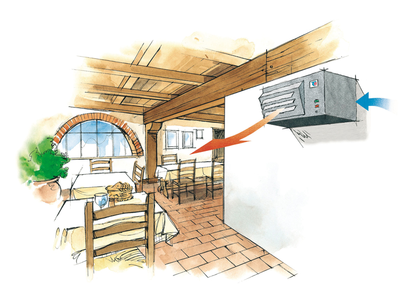 Промышленный, настенный, газовый воздухонагреватель (тепловентилятор, теплогенератор, калорифер) серии MJ и MJ-4 Deluxe со встроенной горелкой и дымососом итальянского производителя TECNOCLIMA работают как на магистральном, так и на сжиженном (пропан и бутан) газе. Имеют безупречную репутацию среди своих пользователей. Высочайшее качество материалов, комплектующих и сборки - вот основные критерии итальянской надежности, безотказности в работе и эффективности. Отличительными особенностями являются: высокий тепловой КПД (до 92,5%), высокоэффективная камера сгорания закрытого типа и теплообменник изготовлены из жаропрочной нержавеющей стали AISI 430, атмосферная горелка с соплом из нержавеющей стали, электронным розжигом и ионизационным контролем пламени, осевой малошумный вентилятор, электронная плата управления и контроля, обеспечивающая полную безопасность, горизонтальные жалюзи для регулирования направления потока, дымосос центробежного типа, одноступенчатое регулирование тепловой мощности и одна ступень расхода воздуха (вкл./выкл.) в корпусе из окрашенной листовой стали в серии MJ и двухступенчатое регулирование тепловой мощности и две ступени расхода воздуха в корпусе из нержавеющей стали AISI 430 в серии MJ-4 DELUXE.