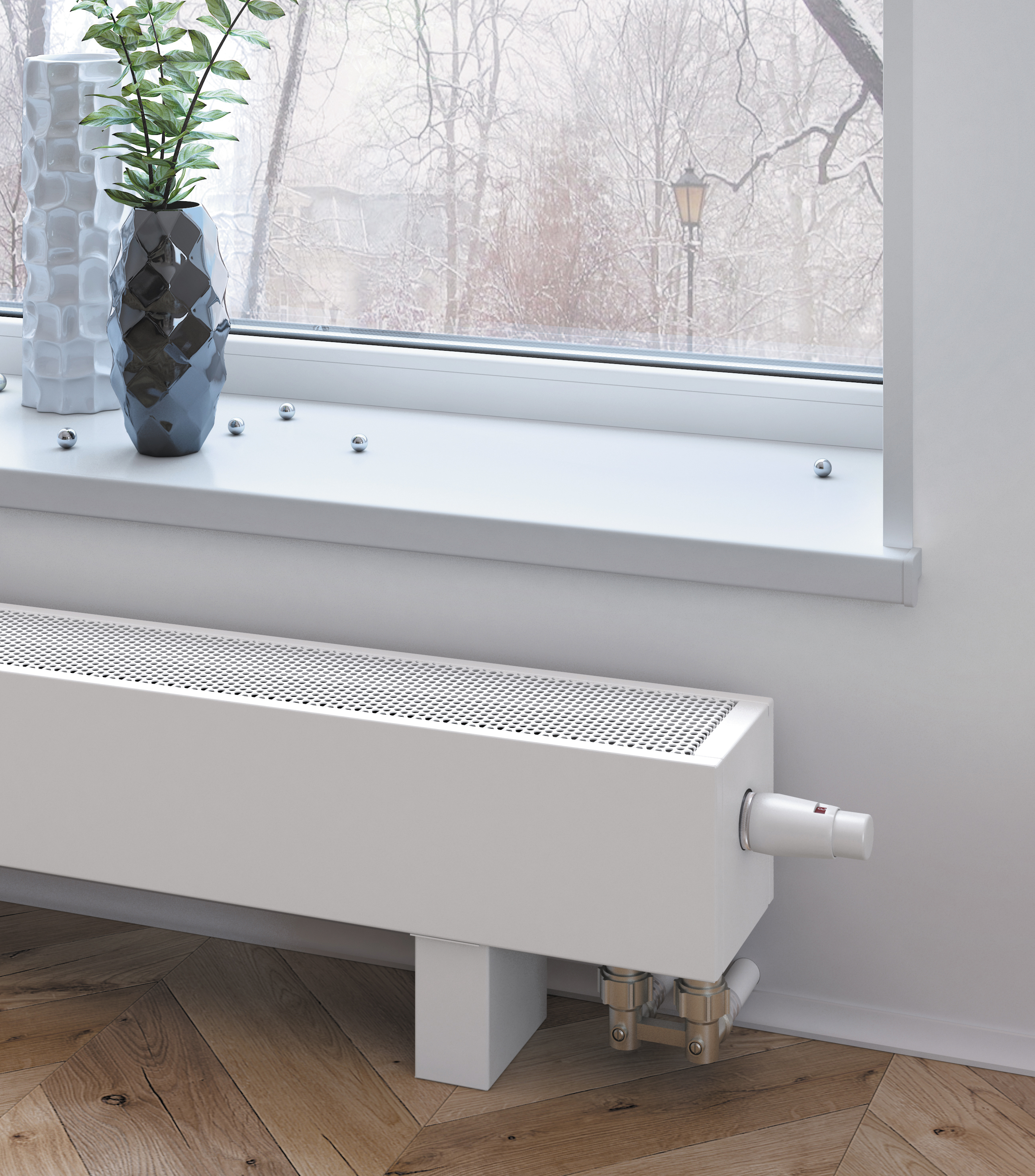 | Тип: | Низкий напольный водяной конвектор с регулируемыми ножками, боковым подключением и перфорированной решеткой (крышкой) серии MiniKon Standart (Стандарт) |
