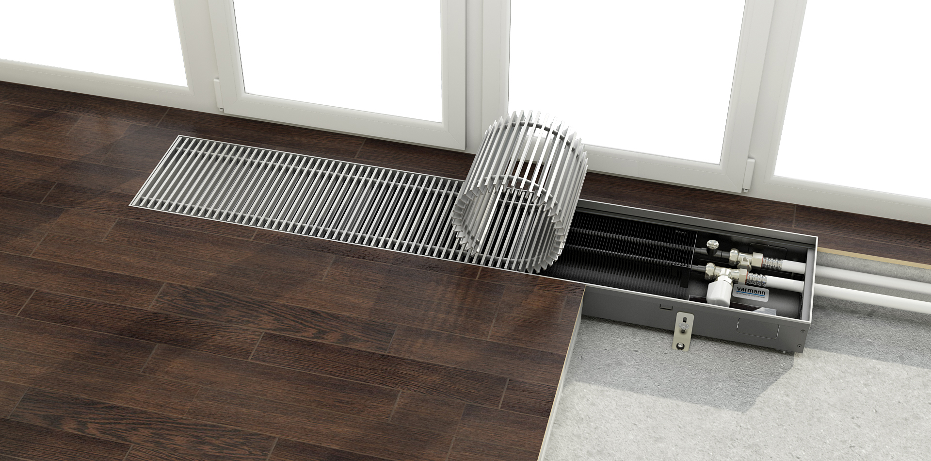 Встраиваемый в пол конвектор с естественной конвекцией (Naturliche konvektion) Varmann Ntherm - это готовый к монтажу отопительный прибор, предназначенный для изоляции от холодного воздуха больших, доходящих до пола окон, а так же встраивания в подоконник. Идеален для применения как вспомогательный отопительный прибор с системами тёплого пола, вентиляции, радиаторного водяного отопления.
