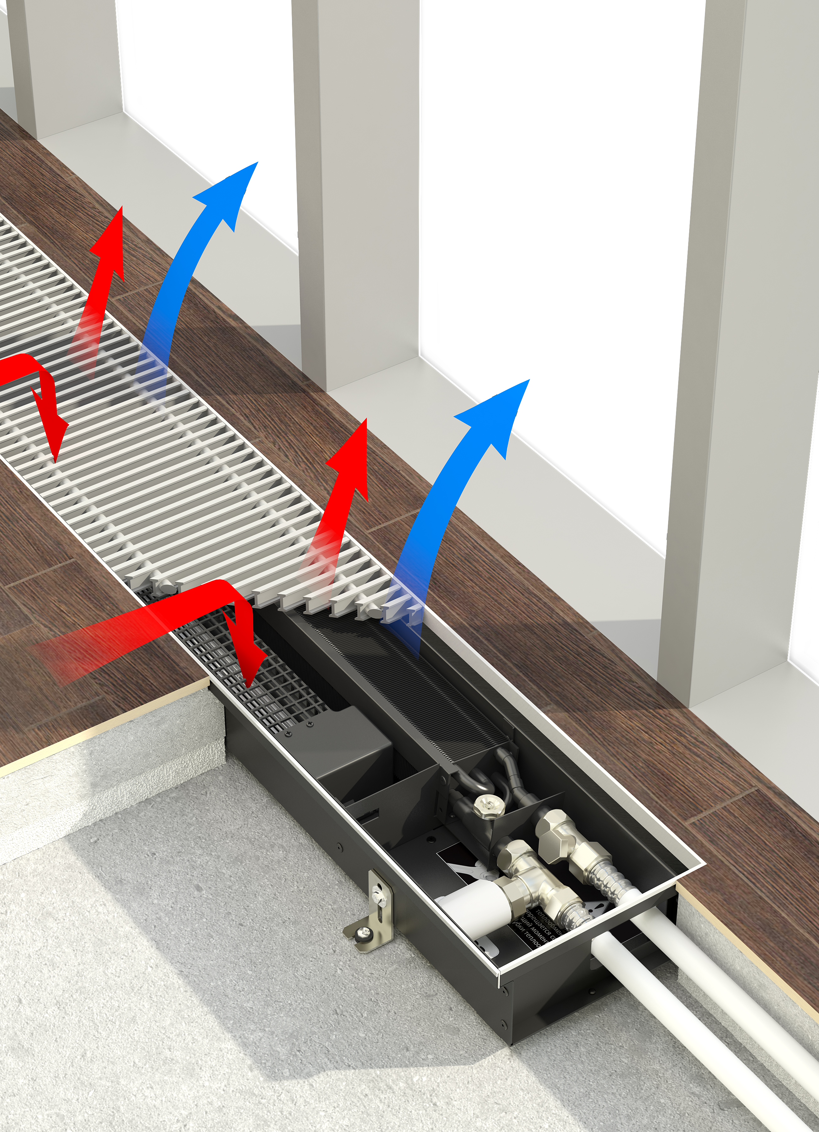 | Тип: | Компактный внутрипольный конвектор с принудительной конвекцией (с вентилятором) 2-х (двух) трубный серии Qtherm HK Mini, работает на охлаждение |